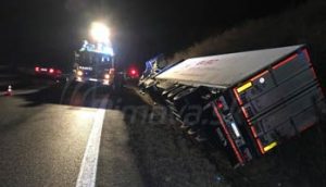 S kamiónom sa prevrátil na strechu, vodič zneho vyšiel po vlastných
