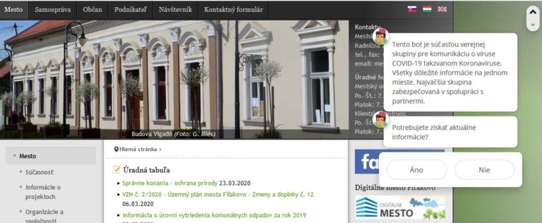 Fiľakovo distribuuje rúška seniorom, do boja proti koronavírusu ide aj chatbotmi