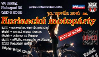 28.apr.2016 - Popoludní sa motorkári stretnú na Kurinci pri Rimavskej Sobote na guľáši, organizátori pripravujú aj koncert dvoch kapiel. Ďalej...