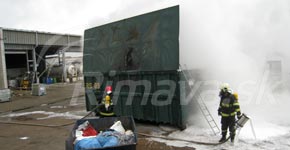 VIDEO: Hasiči zlikvidovali v Detoxe požiar kontajnera s nebezpečným odpadom