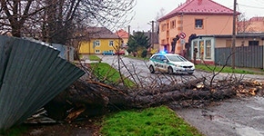 R. SOBOTA: Silný vietor zvalil stromy aj reklamný bilbord