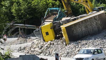 Na Zbojskej sa prevrátil s nákladným autom, utrpel vážny úraz
